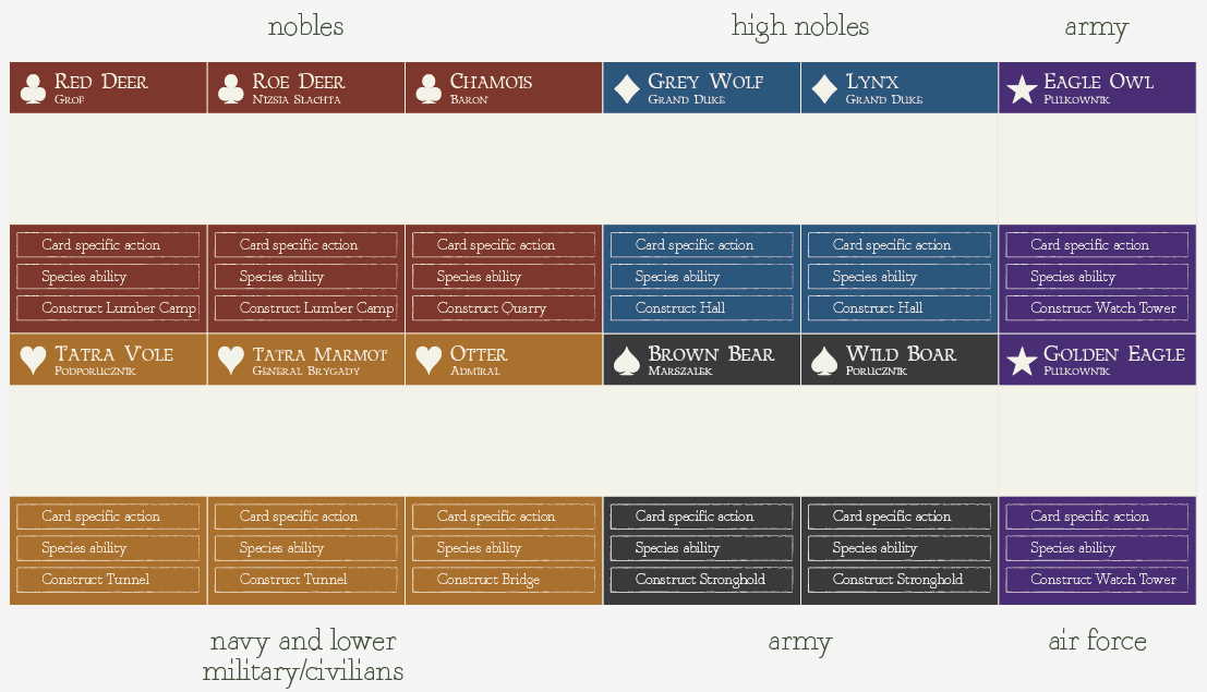 First set of animal cards and their abilities. Icons to be replaced by more fitting.